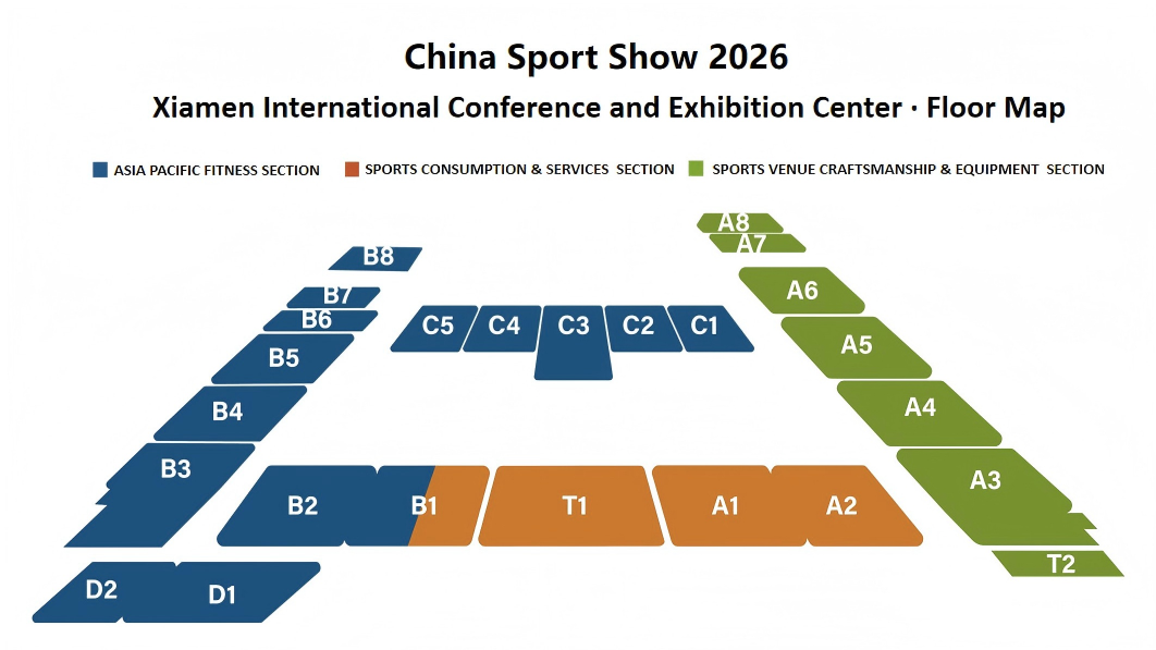 피트니스, 스포츠 경기장 및 건설 스포츠 소비 및 서비스 등 5개의 전문 테마 전시구역을 중심으로