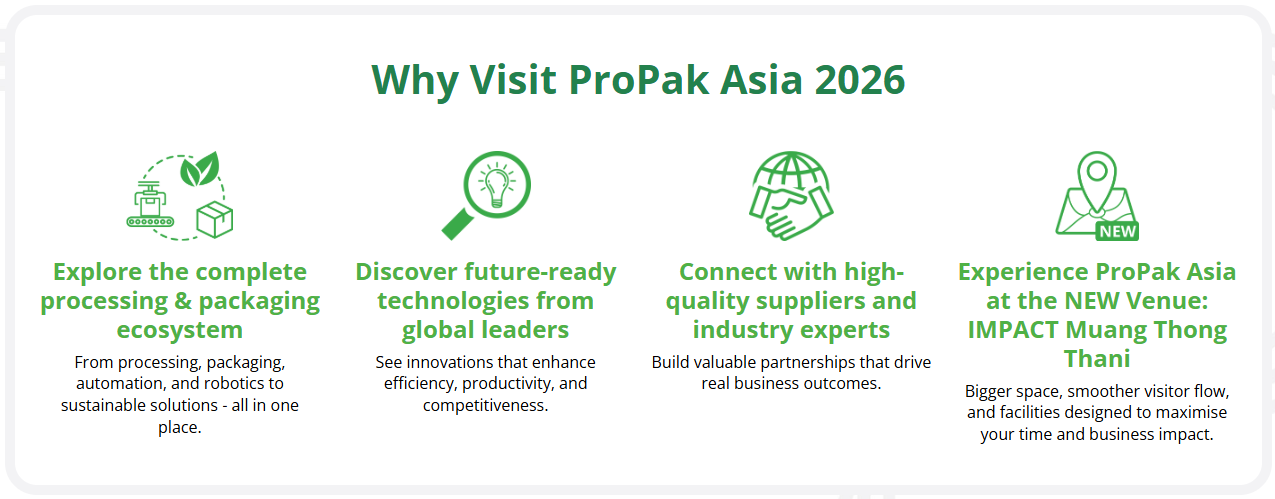 아시아 최대 규모의 방콕 포장기계 박람회 PROPAK ASIA는 귀사의 글로벌 경쟁력 강화를 위한 최적의 기회입니다.