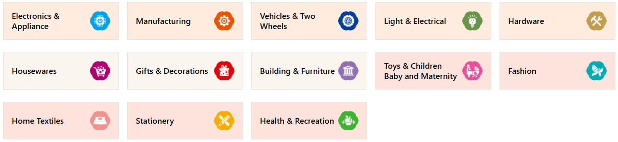 제1기 전시 분야는 전자 및 가전제품, 조명장비, 산업기계, 농업기계, 스마트 모빌리티, 신 에너지자원 등 최신